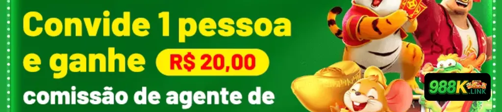 Sua indicação vale dinheiro direto na sua conta! Convide uma pessoa para se cadastrar e ganhe uma comissão de agente de R$ 20,00 instantaneamente. É a forma mais simples e rápida de aumentar seu saldo enquanto se diverte com seus amigos no melhor cassino online.